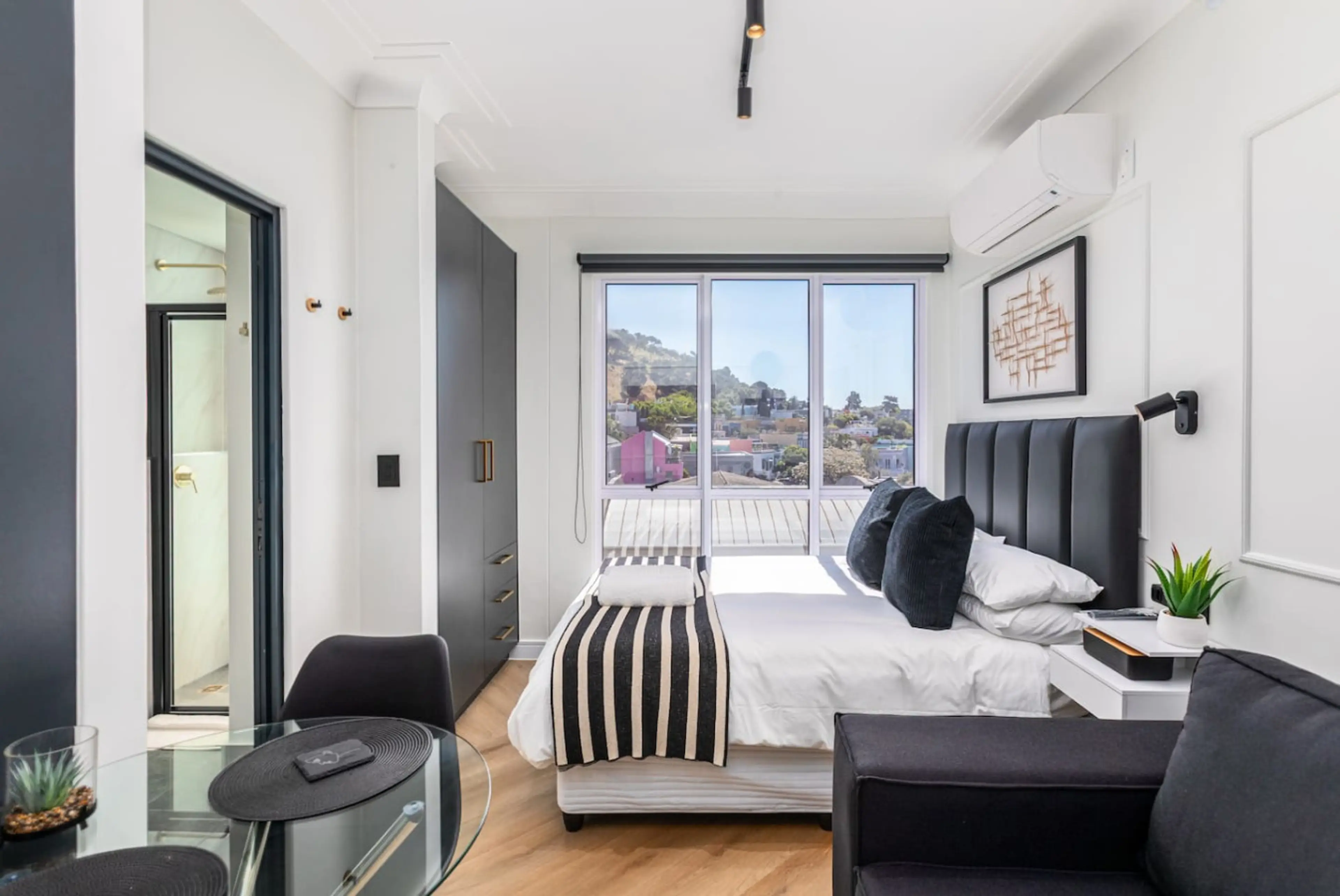 Enjoy this centrally located, luxury studio apartment with views De Water Kant. Great blend of peace and quiet while on a business trip, with the city buzzing 6 floors below or join in on the many activities the city has to offer. The apartment is slick and stylish to make you feel at home. We offer...